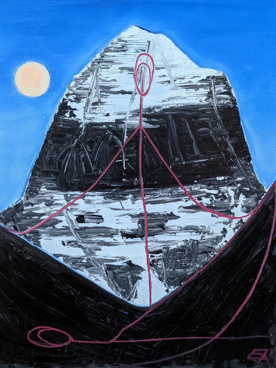 Мое внимание привлекла черная гора перед Белухой, я ее назвала богиня Кали, увидела в ней женский образ в черном одеянии, который говорит и приглашает. А у Белухи увидела образ Альпиниста. Я читала и правда альпинисты покоряют эту вершину)